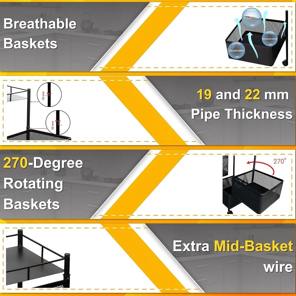 • Swinging basket feature allows easy access to stored items without removing the basket entirely