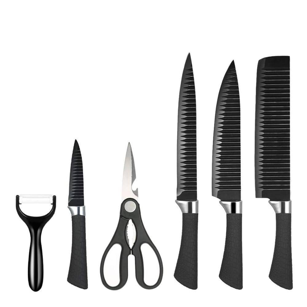 6-Piece Professional Kitchen Knife Set with Non-Slip Handle, Peeler & Scissors – Chef, Bread, Utility, Carving & Paring Knives for Home & Cooking