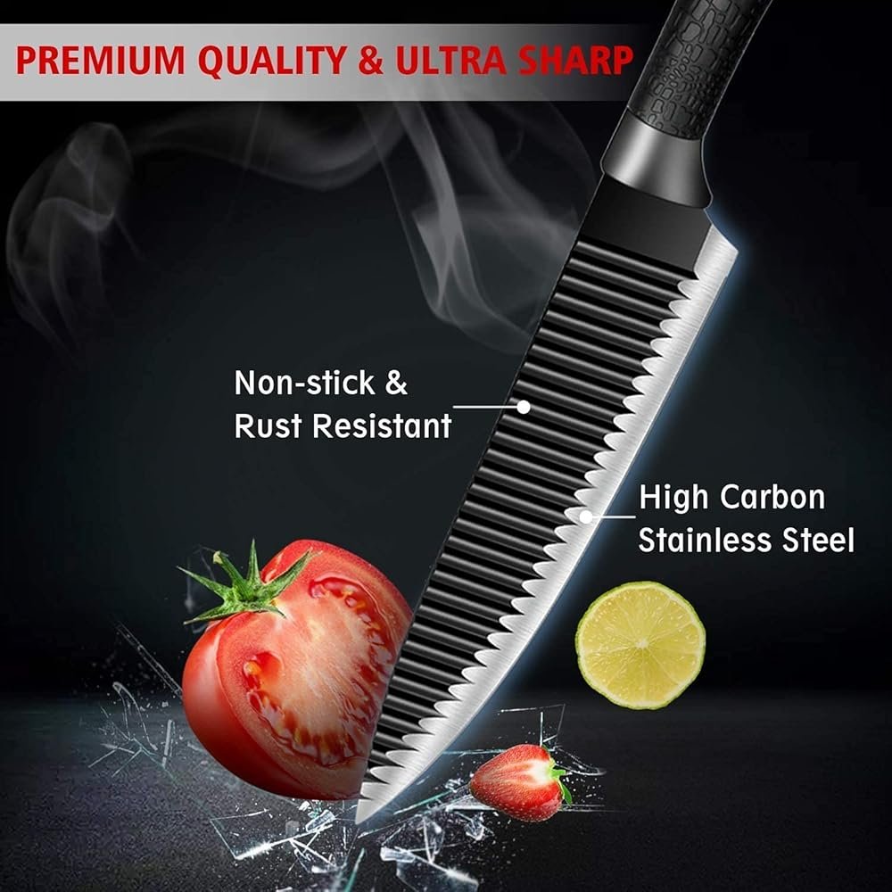 | Features | Ultra-sharp stainless steel blades, ergonomic non-slip handles, multi-functional knives for meat, vegetables & fruits, with stylish rotating holder. |