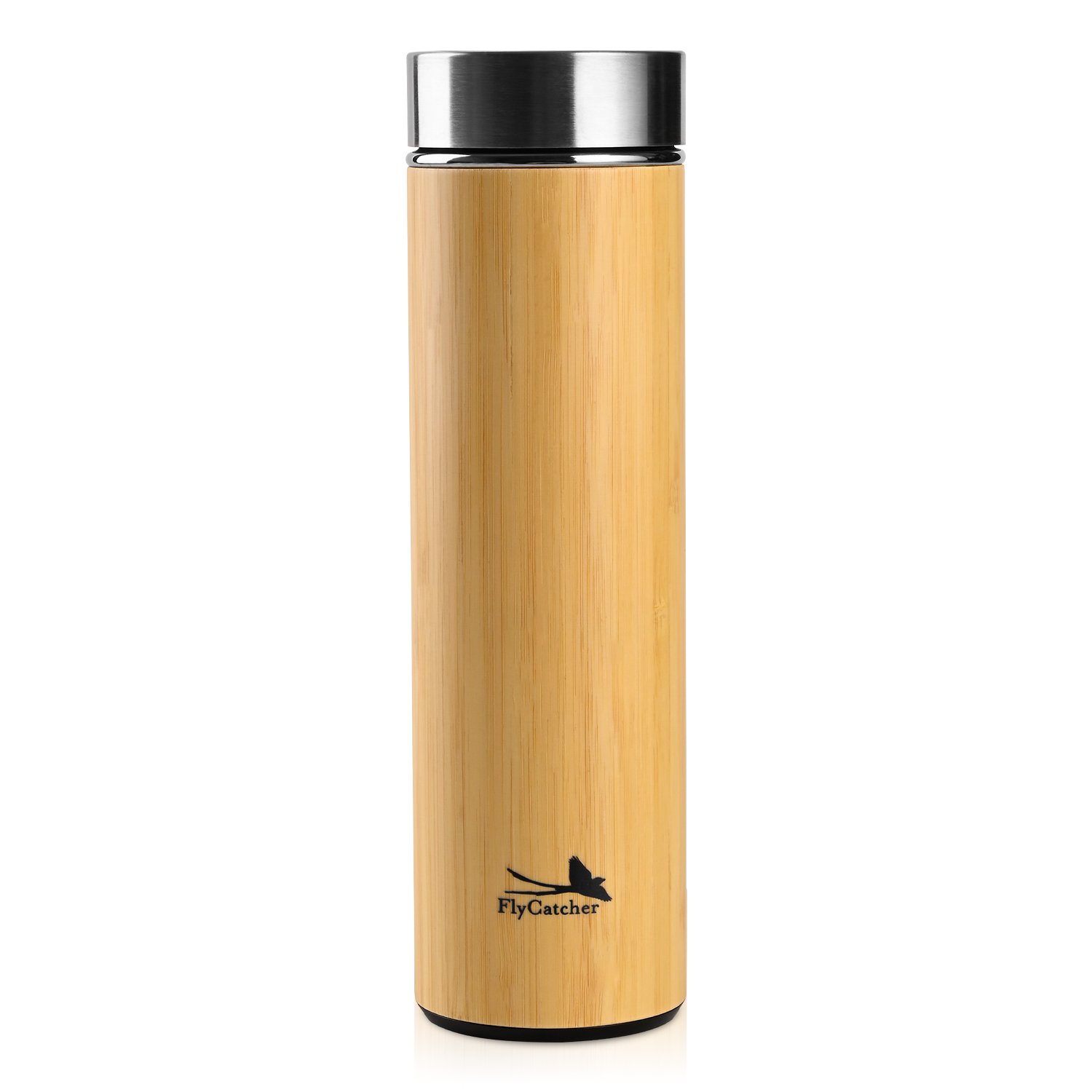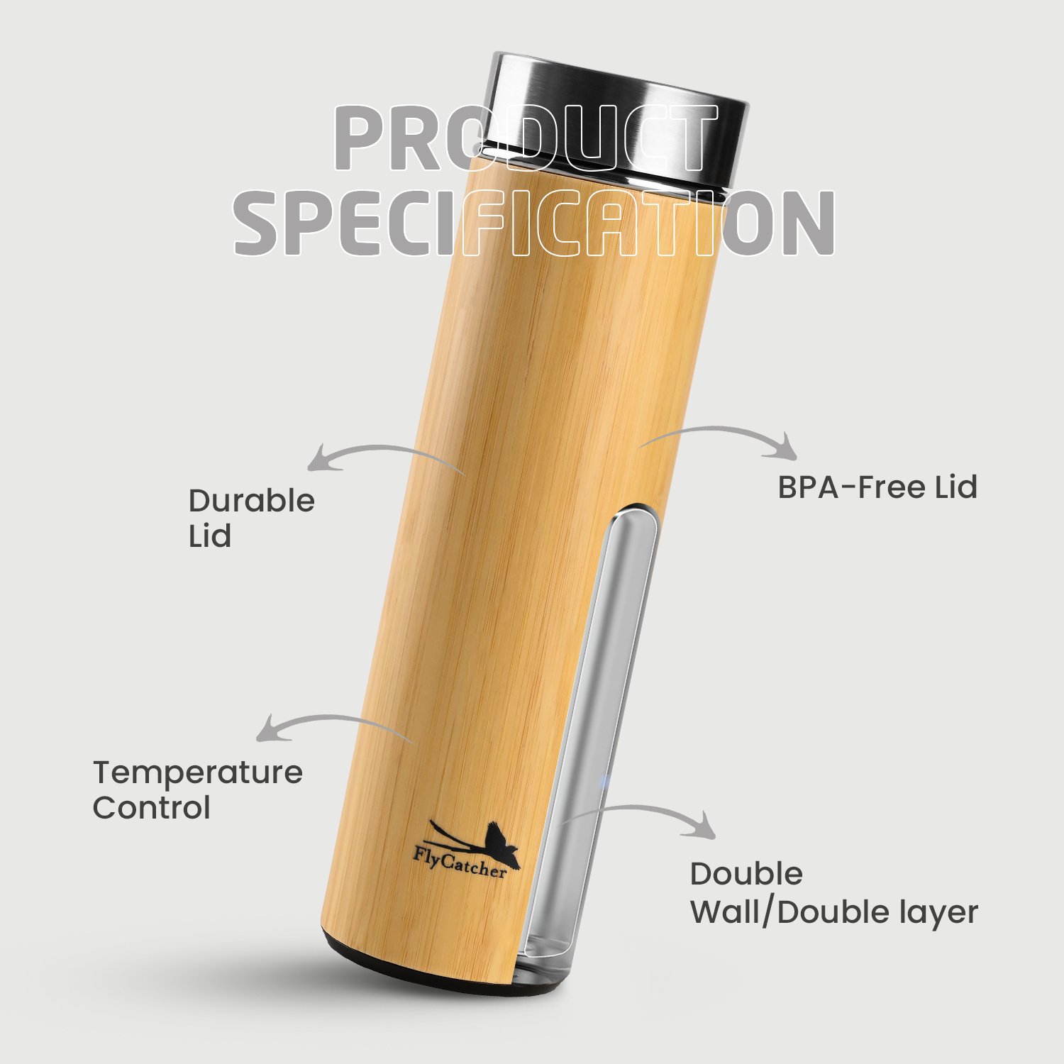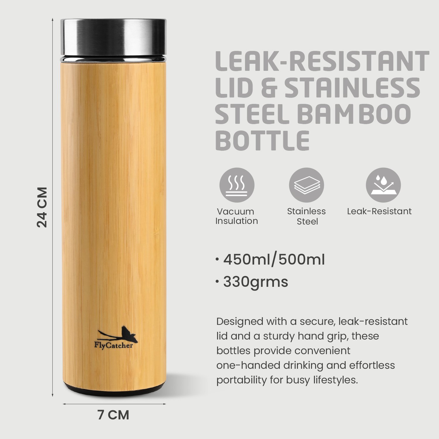 Fly Catcher Bamboo Style Insulated Water Bottle 500ml – Double Wall Vacuum Flask, Hot & Cold Stainless Steel Bottle, Eco-Friendly Reusable Travel Bottle, Leakproof Lid, Lightweight Office, School, Gym & Outdoor Hydration Bottle