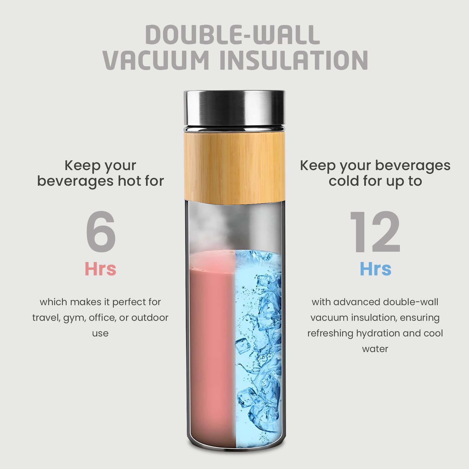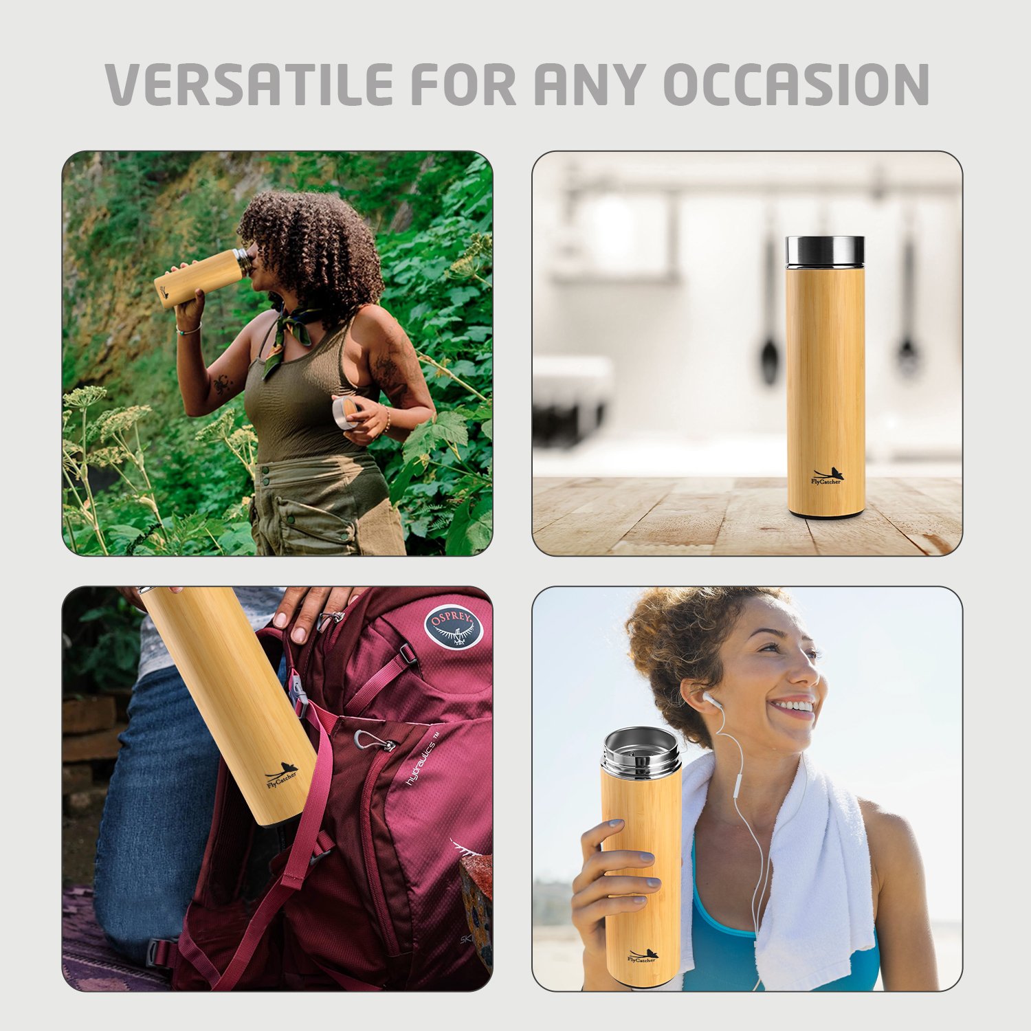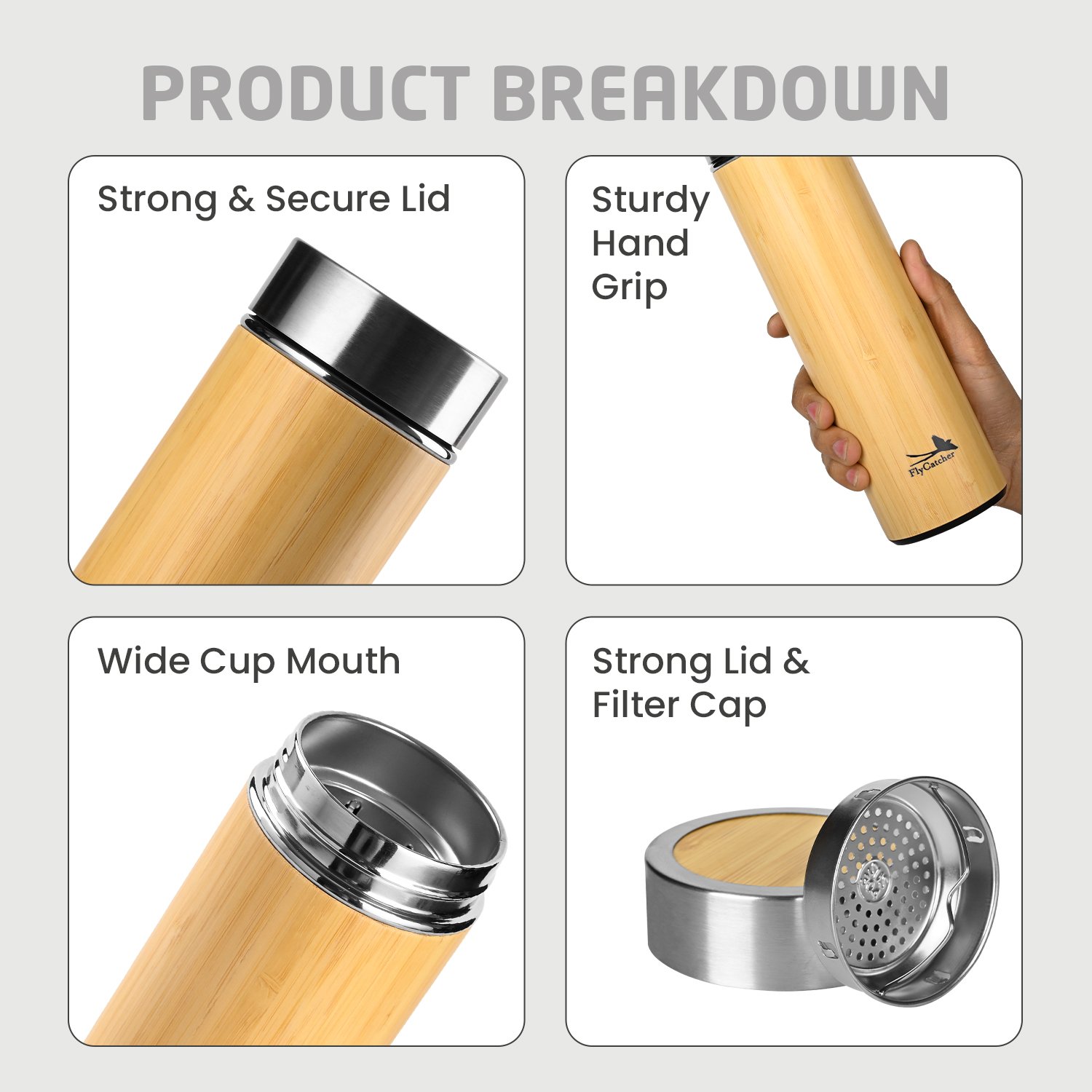 Fly Catcher Bamboo Style Insulated Water Bottle 500ml – Double Wall Vacuum Flask, Hot & Cold Stainless Steel Bottle, Eco-Friendly Reusable Travel Bottle, Leakproof Lid, Lightweight Office, School, Gym & Outdoor Hydration Bottle