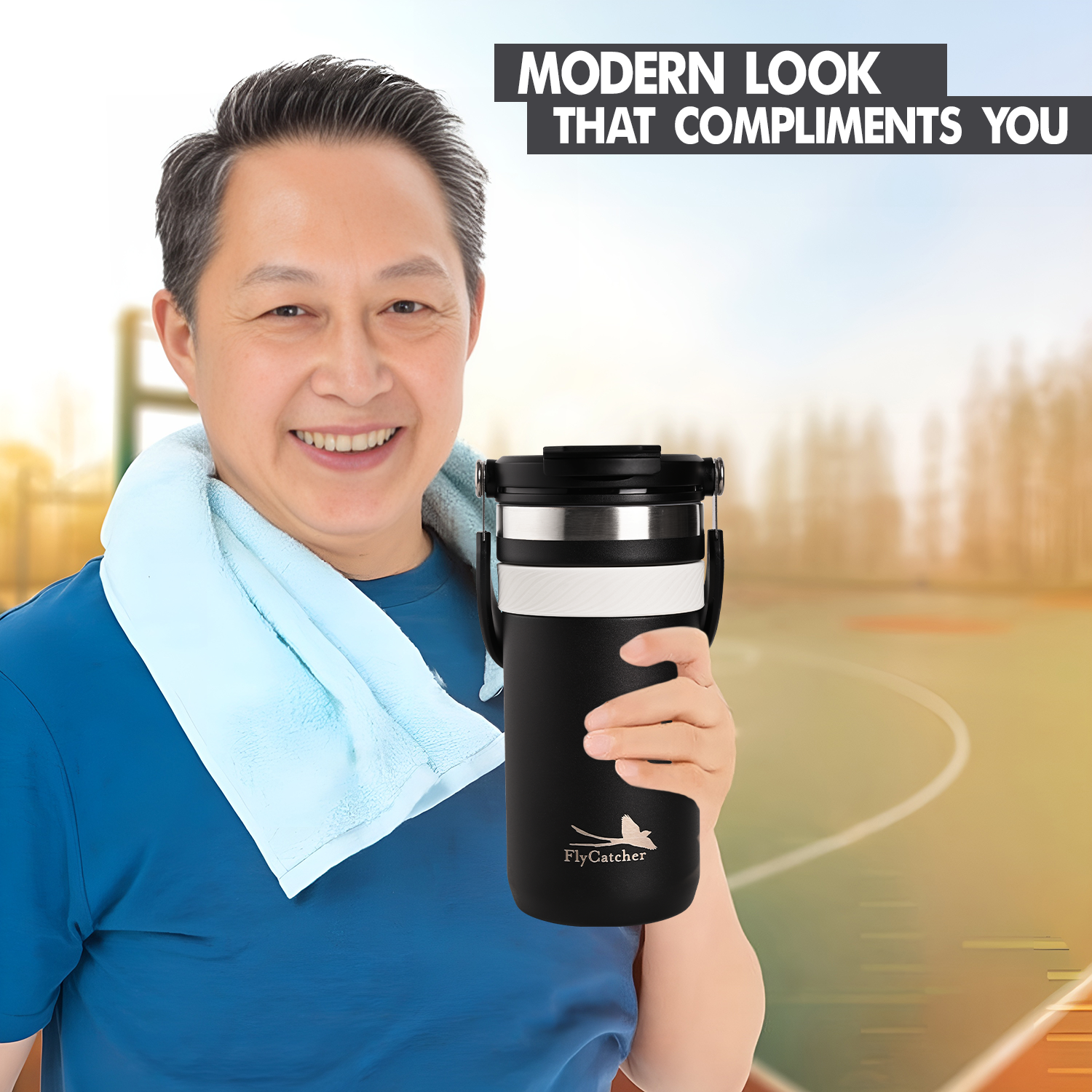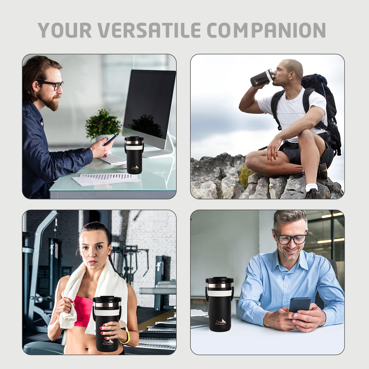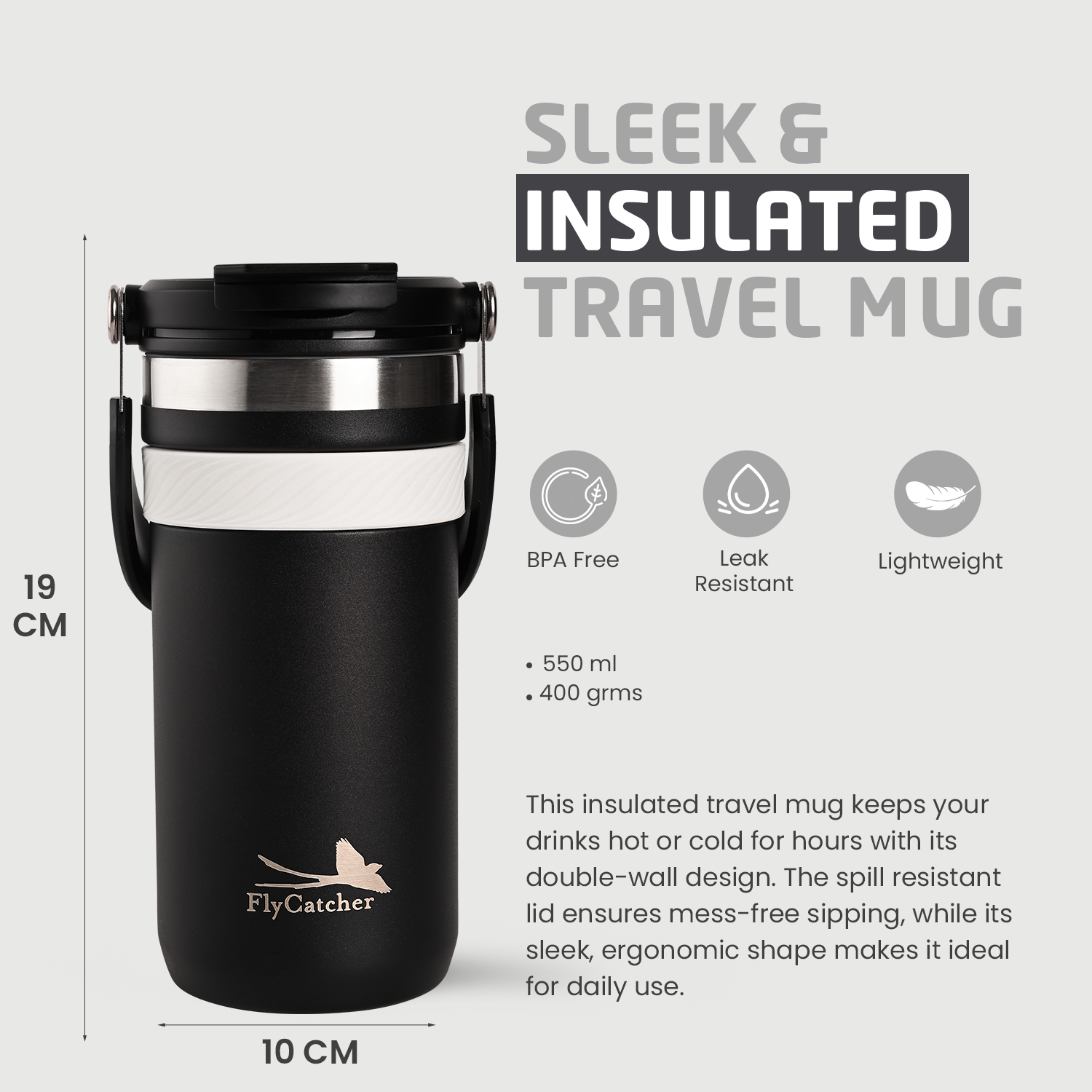 Fly Catcher Premium Stainless Steel Double Wall Insulated Mug 550ml – Vacuum-Sealed Thermal Design, Keeps Beverages Hot & Cold for Hours, Durable Spill-Resistant Lid, Ideal for Office, Home, Travel & Daily Use (Black)