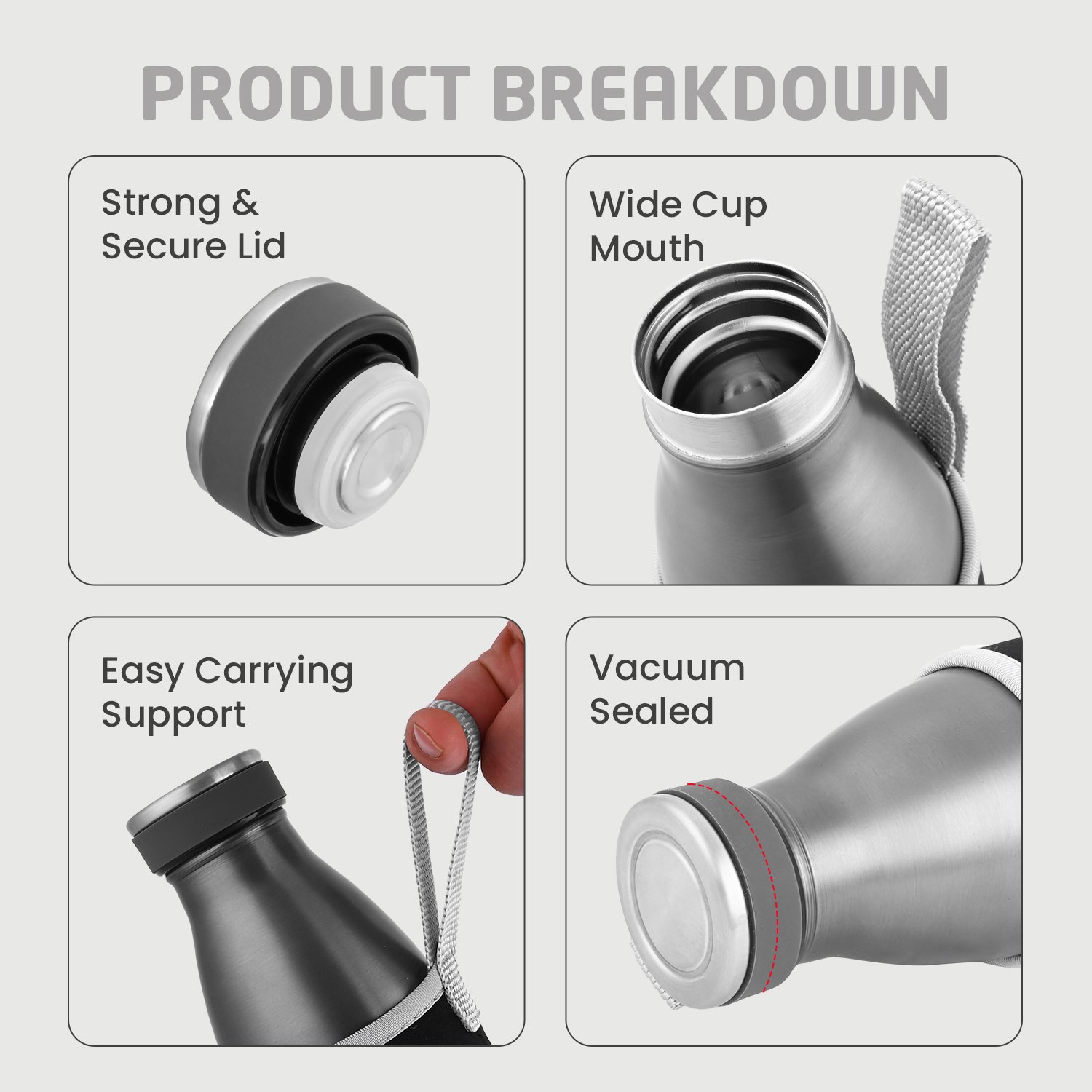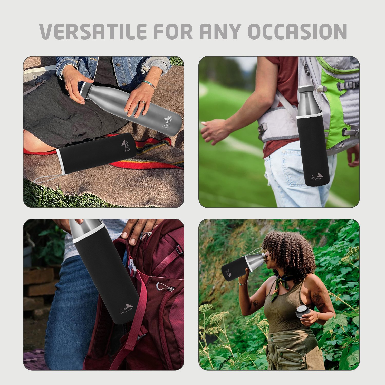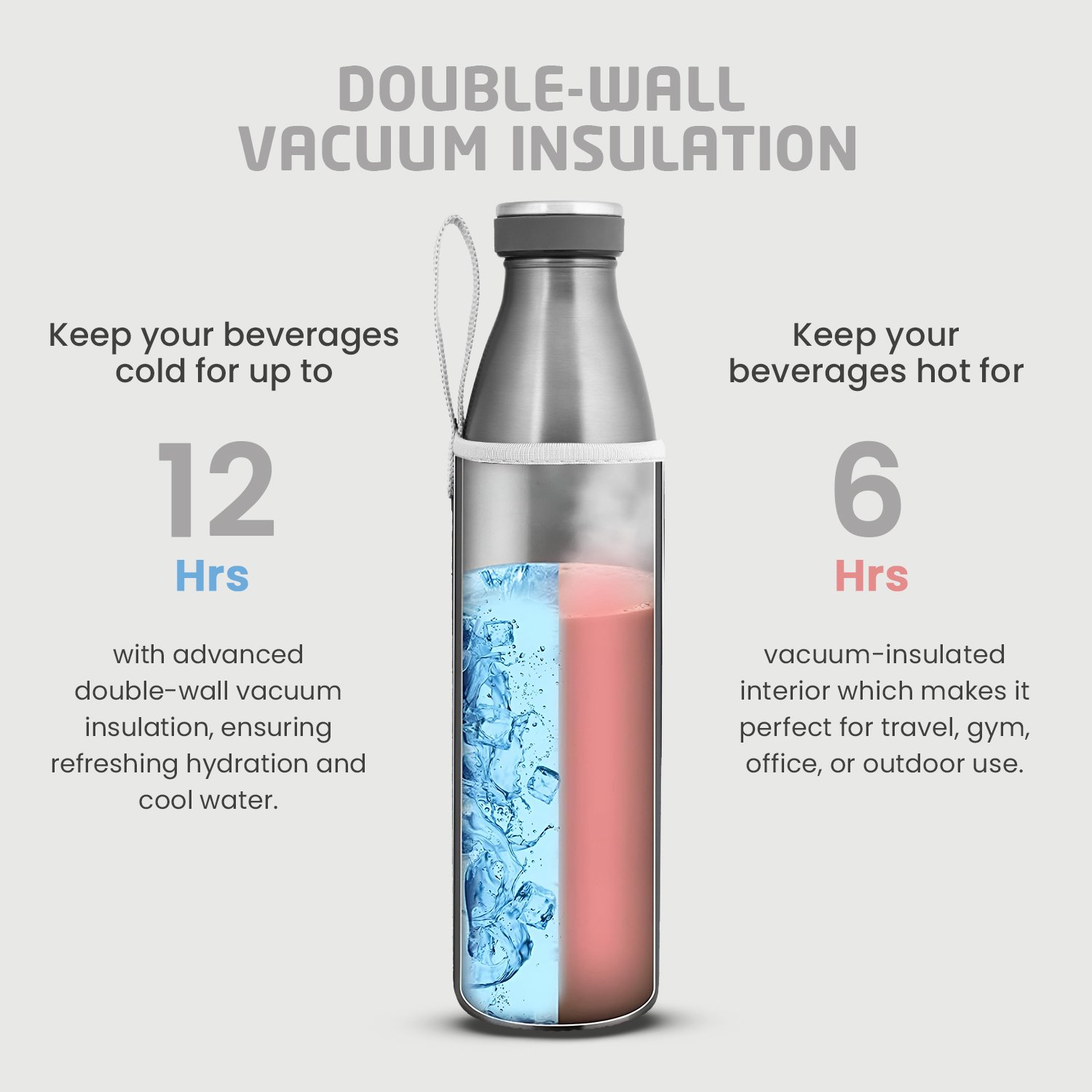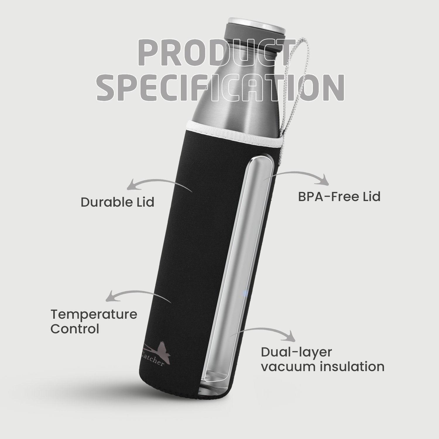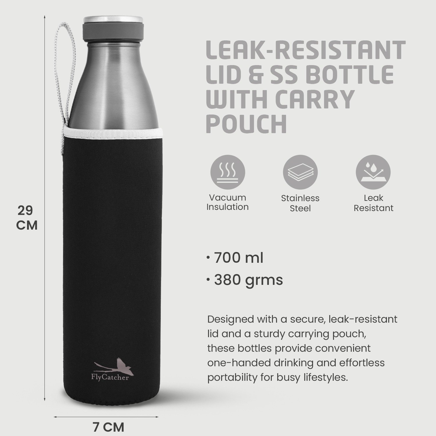 Fly Catcher Premium Stainless Steel Water Bottle with Protective Sleeve 700ml – Durable Rust-Free Metal Construction, Leakproof Secure Lid, Easy Carry Design, Ideal for Office, School, Gym, Travel & Outdoor Hydration (Silver)