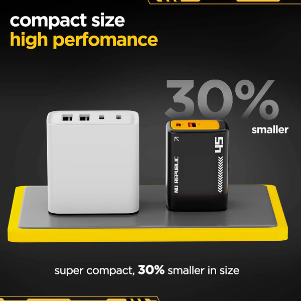 Nu Republic Cybotron 45W Fast Charger, PowerBlitz Technology, Universal Compatibility, Smart Power Distribution, Overheat and Overload Protection