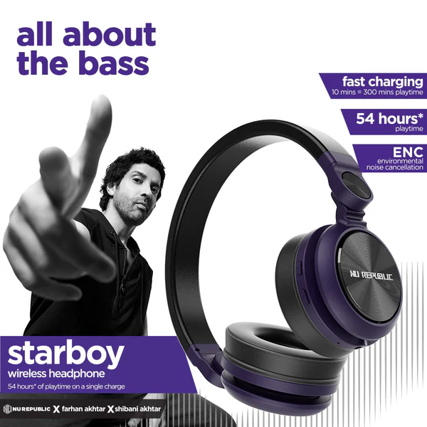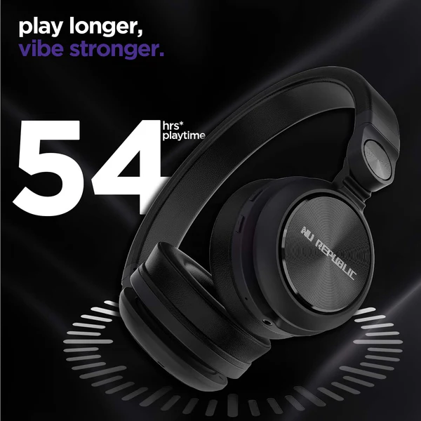 Nu Republic Starboy Bluetooth Over-Ear Headphones with 54H Playtime, X-Bass® Technology, 40mm Neodymium Drivers, Gaming Mode, Bluetooth v5.4, Dual Pairing, ENC, Type-C Fast Charging (Black)