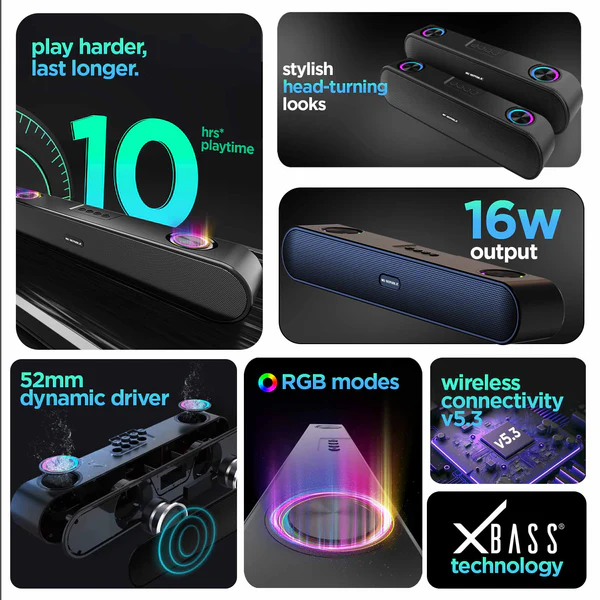 Features 18w Output, 6 Hours Playback, Bluetooth 5.4, Rgb Lighting, X-Bass Technology