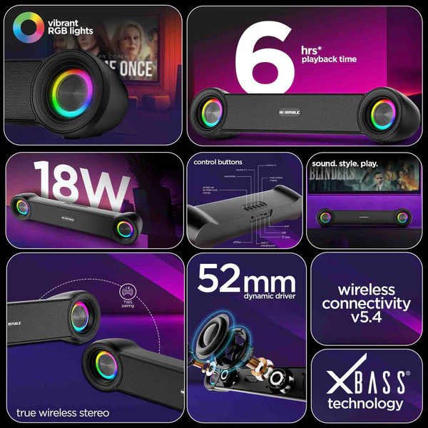 | Features | 18w Output, 6 Hours Playback, Bluetooth 5.4, Rgb Lighting, X-Bass Technology |