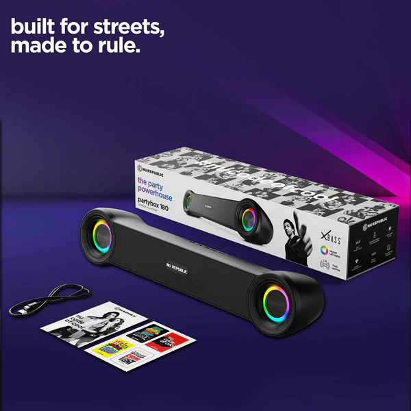 Partybox 180 Bluetooth Speaker with TWS Pairing, 18W RMS Output, LED Lights, X-Bass® Technology, 6 Hrs Playtime & 52mm Dynamic Drivers, Portable Wireless Party Speaker