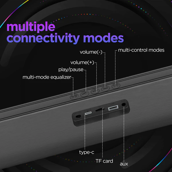 - Multiple connectivity: Bluetooth, AUX, USB & TF