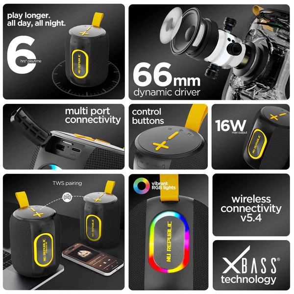 Features 6 Hours Playtime, Multi-Port Connectivity, RGB Lights, TWS Pairing, X-Bass®Technology
