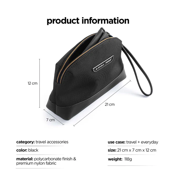| Features | Compact & versatile Voyager Tech Kit with water-resistant vegan leather, premium nylon build, smart design, durable web loop, and luxury embossed finish. |